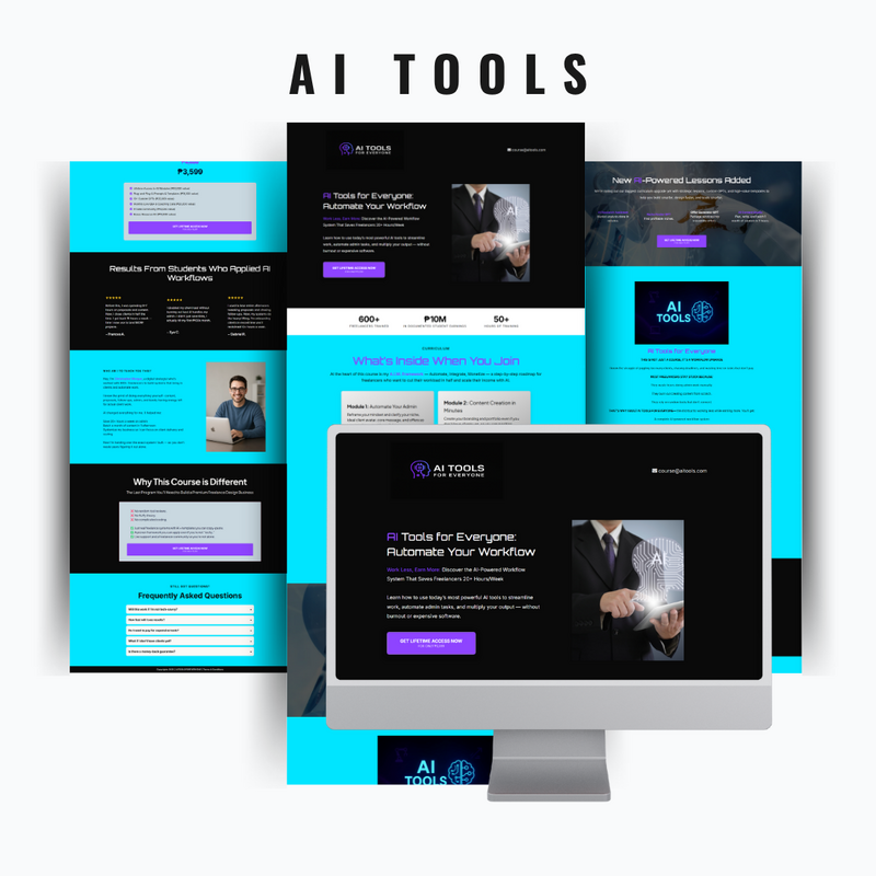 AI Tools for Everyone empowers freelancers, creators, and entrepreneurs to streamline their workflows using smart, accessible AI systems. The brand embodies a sleek, futuristic identity with a Midnight Black base and neon purple-blue accents that reflect innovation and simplicity.